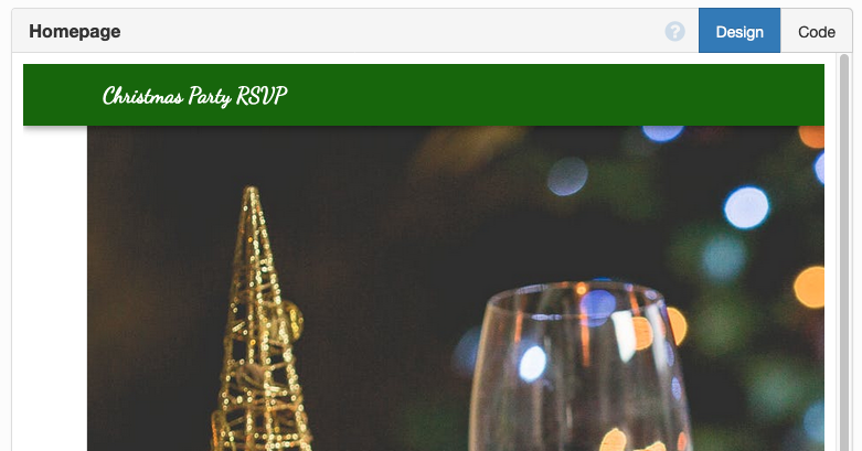 We’re going to have a few different screens depending on whether a party is being added, or someone is responding to an RSVP. So, let’s have a blank Homepage and manage navigation using separate Forms. Our Homepage is just a nice background, and not much else: