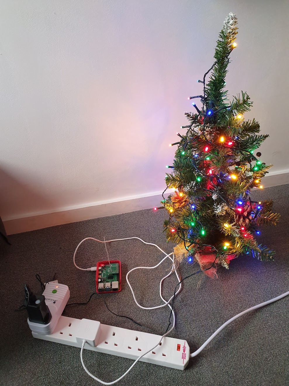 Christmas trees are appearing all over. But this year we can’t gather in the same room to turn ours on! So we’re controlling it from the web, with nothing but Python. Here’s how it works: