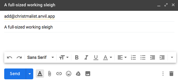 # Messages to add@christmalist.anvil.app go to the 'add item' handler