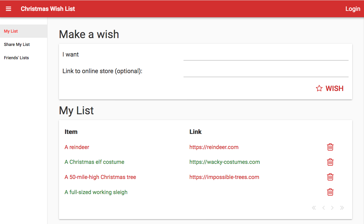 Remember the wishlist app from earlier? You can create a Christmas present wishlist at