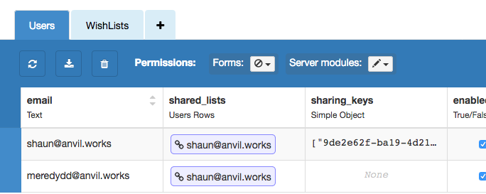 The ‘Users’ table stores a list of valid keys. I check the k query param against the sharing_keys column to check that the link is valid.