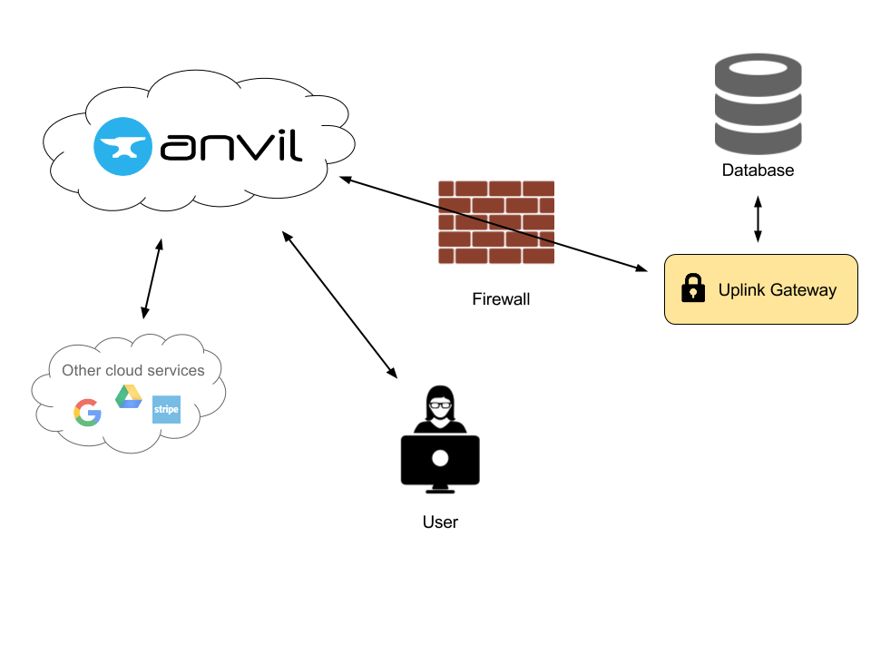 If you’re in a corporate environment, your web app may need to access local resources. For example, you might want to use Anvil to query a database on your corporate network. For this, you will normally use the Anvil Uplink. This lets you securely give your Anvil app access to the relevant parts of your database: