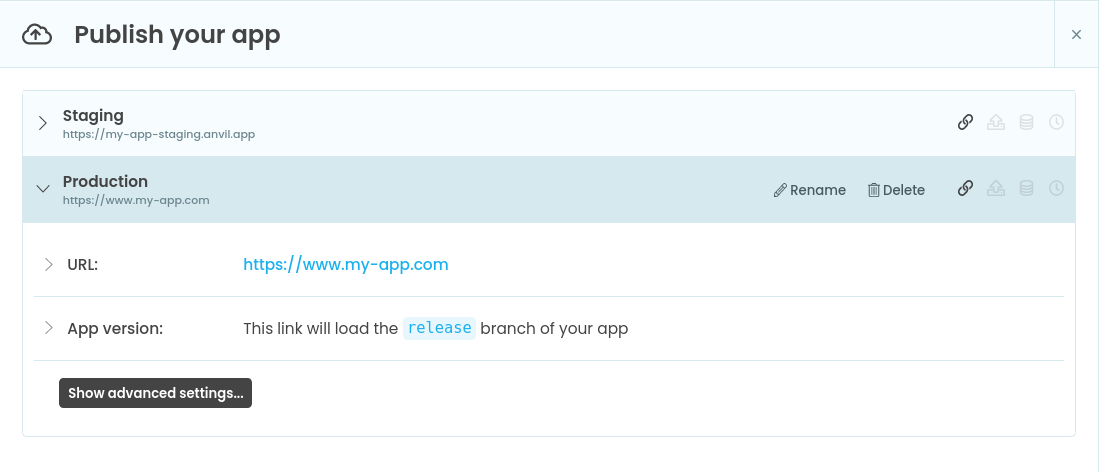 Deploy development, staging and production versions of your app on separate URLs with separate databases, Uplinks and more. It’s now easier than ever to build, test and deploy your web apps.