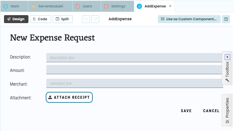 You can now open multiple forms and modules in separate tabs, and switch between them easily. Switch from writing client code to writing server code to editing your data tables to editing your assets and back again. Colour-coded tabs make it easy to keep track of what you’re working on.