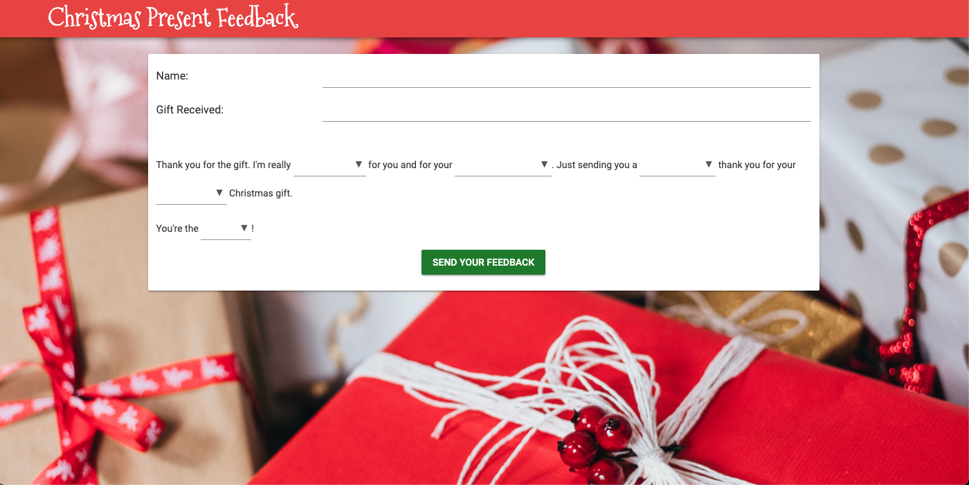 For Christmas Eve, we built a quick app to help your friends and family give you feedback on your gifts: