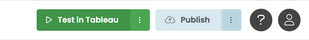 As you develop your Tableau extension, you’ll want to test it in a Tableau dashboard. To set this up, click Test in Tableau in the top right of the Anvil Editor: