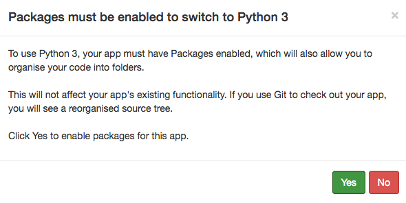 If your app does not yet use Packages, you will be asked to enable Packages before you upgrade. Enabling Packages will not affect your app’s functionality.