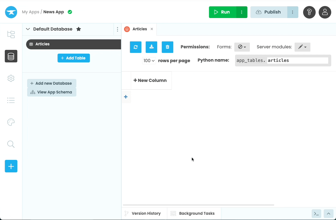 Every app is a Git repository. Create branches, commit changes, and resolve merge conflicts all within the Anvil Editor.