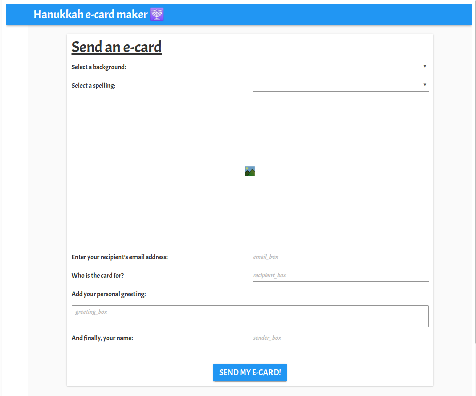 We’ll send the inputs to the server when the ‘Send my e-card!’ button is clicked: