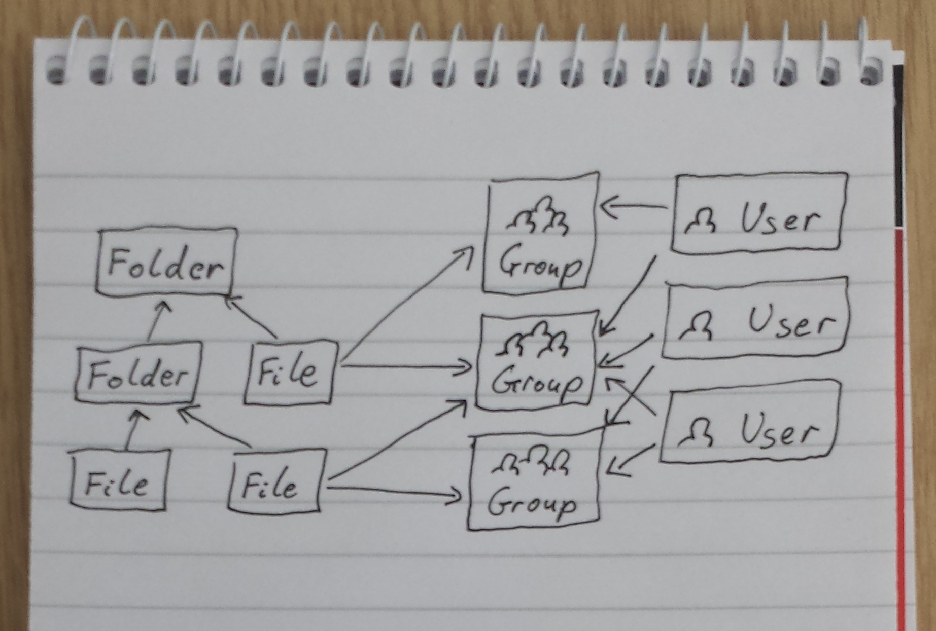 Each file refers to the folder that contains it, and to all the groups that have access to it.