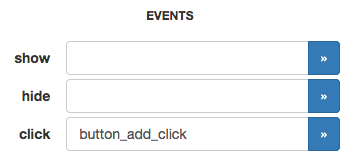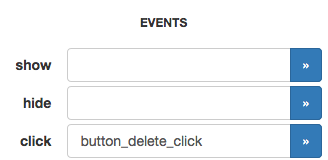 Now create a click event handler for your new delete button by clicking the blue arrows to the right of ‘click’ in the Events section: