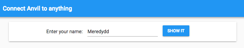 anvil.server.call("show_message", self.name_box.text)And that’s it! Now when you enter your name in the App: